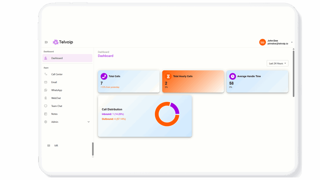 Link phone, email, WhatsApp, live chat, and social accounts to one Telvoip dashboard.